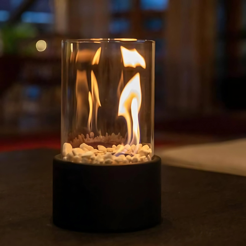 Maak elk moment speciaal met de Flame Draagbare Glazen Tafelhaard—bestel de uwe vandaag nog!